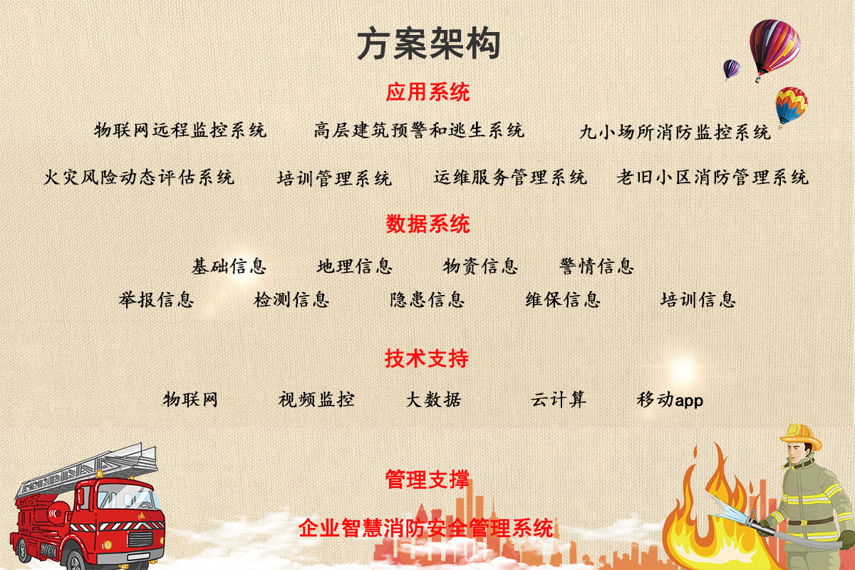 建設(shè)物聯(lián)網(wǎng)消防遠(yuǎn)程監(jiān)控系統(tǒng)和智能預(yù)警系統(tǒng),實(shí)現(xiàn)動(dòng)態(tài)感知、智能研判、精準(zhǔn)防控,為消防提供信息支持。
